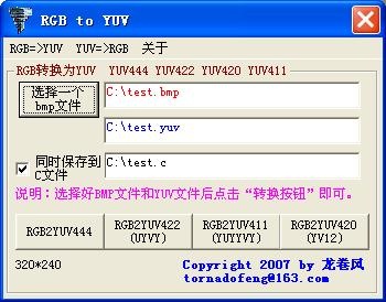 RGB到YUV转换的代码如下: