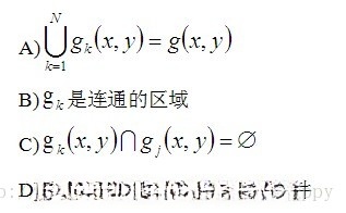 将一副图像g(x,y),其中0≤x≤Max_x,0≤y≤Max_y,进行分割就是将图像划分为满足如下条件的子区域: