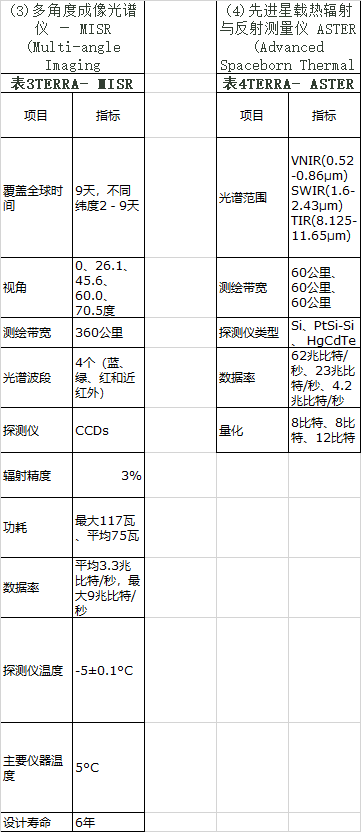 该卫星景物面积设定为60×60公里,并由三个子系统构成:可见光近红外(VNIR)、短波红外(SWIR)以及热红外(TIR)。该传感器总共包含着14个不同的波段类型,在这些波段中又细分出三个主要区域:第1到第3个波段依次对应绿光、红色以及近红外区域;第4至第9个波段则属于短波红外范围;而第10至第14个波段则覆盖了热红外区域。其中VNIR子系统专注于可见光与近红外区间的观察,在此区域内共有三个专门的观测通道,并且具备高空间分辨率(SRE)为15米的能力。这种设计使其能够实现后视成像(±27.6b),从而实现对同一地区进行立体观测的能力。其基高比值B/H被设定为0.6,并且能够绘制出高清晰度的地区地形图。此外VNIR子系统还具备侧视成像能力(±24b),因此在连续5天内可在同一地点进行多次成像拍摄。各个观测通道对应的辐射范围分别为: green: 0.50~0.90 μm, red: 1.5~2.5 μm, near-infrared: 8~12 μm等不同区域的水体混浊度、泥沙含量以及植被健康状况等方面均能提供有效的遥感信息