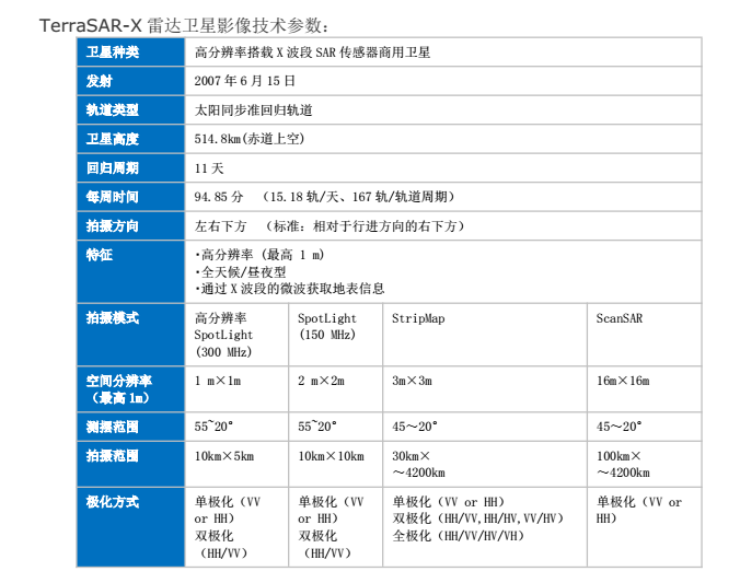 (2)雷达卫星:terrasar-x、radarsat-2、alos雷达卫星