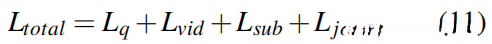 其中,Lq、Lvid、Lsub和Ljont分别表示仅有问题、视频、字幕和损失的联合损失;所有损失项均使用softmax交叉熵损失函数计算。使用Ltotal对模型进行端到端训练。