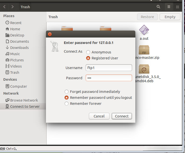 使用文件夹访问服务器,最后能在文件夹下看到1.txt这个文件