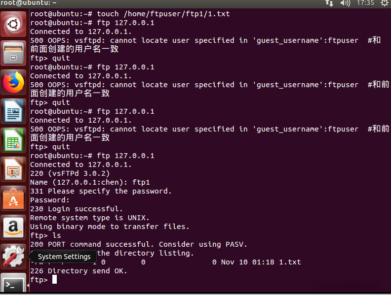 创建的ftpuser账户,用于接下来的实验,并修改密码
