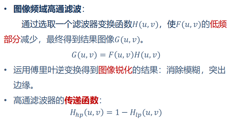 • 图像 锐化 :减少低频分量, 高(的)通(过)滤波