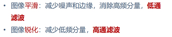 • 图像 平滑 :减少噪声和边缘,消除高频分量, 低(的)通(过) 滤波