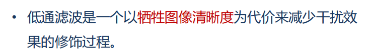 • 低通滤波是一个以 牺牲图像清晰度 为代价来减少干扰效