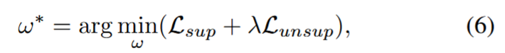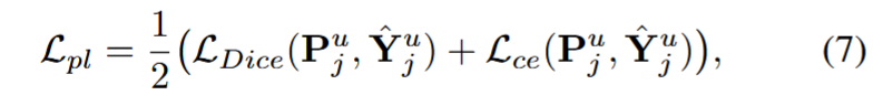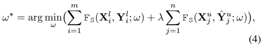 其中,Lsup 和 Lunsup 分别是监督和非监督项,λ 则是它们之间的权衡。伪标签指导 Lpl 是一种无监督损失。