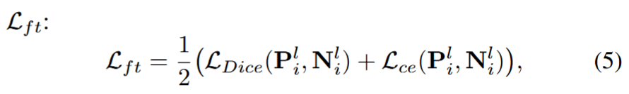 2) 微调模块 :微调模块对视觉基础模型进行微调。作为最流行的通用图像分割模型之一,SAM 是微调模块的默认设置,表示为 FFT(-)。剔除了所有提示,并在推理过程中执行自动分割。框架并不局限于特定的微调策略,它可以用于不同的策略中。将微调损失统一表示为: