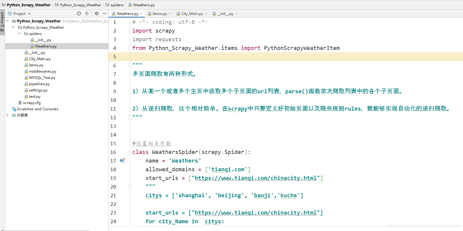 scrapy genspider Weathers tianqi.com (Weather会自动创建为Weathers.py文件,)