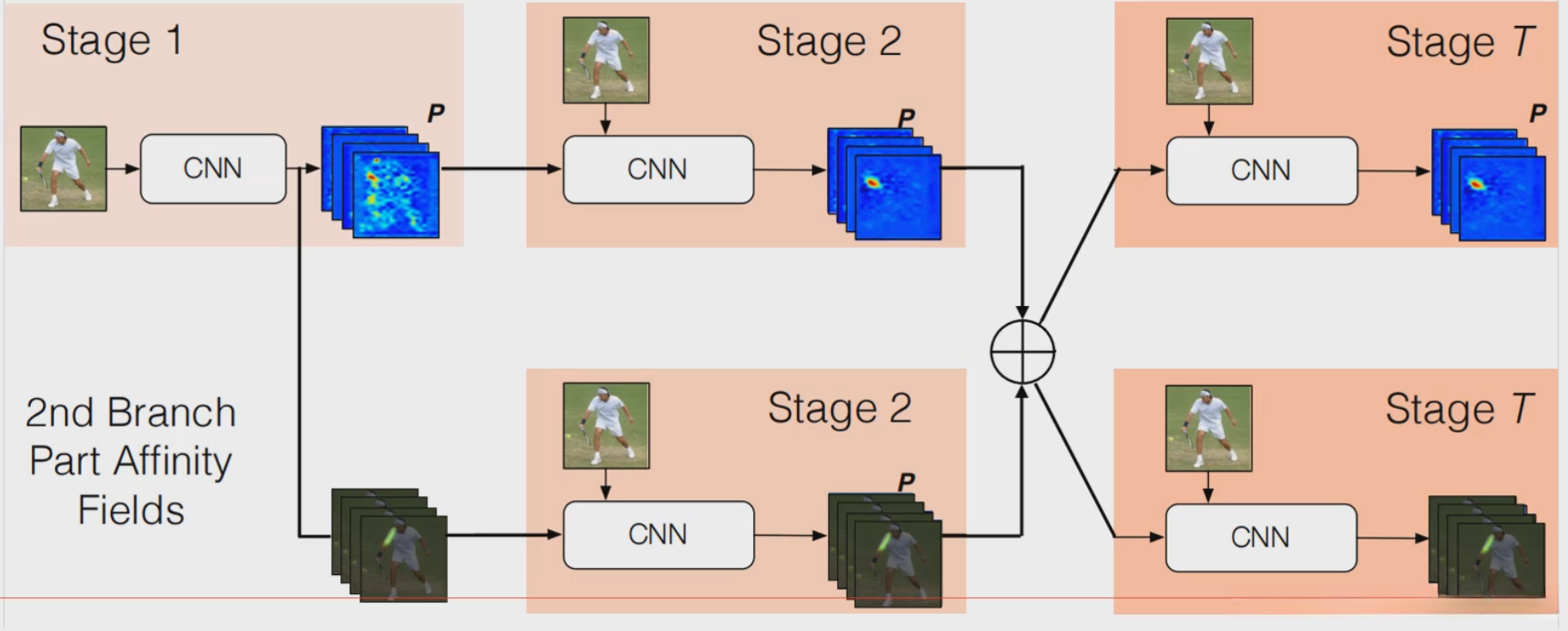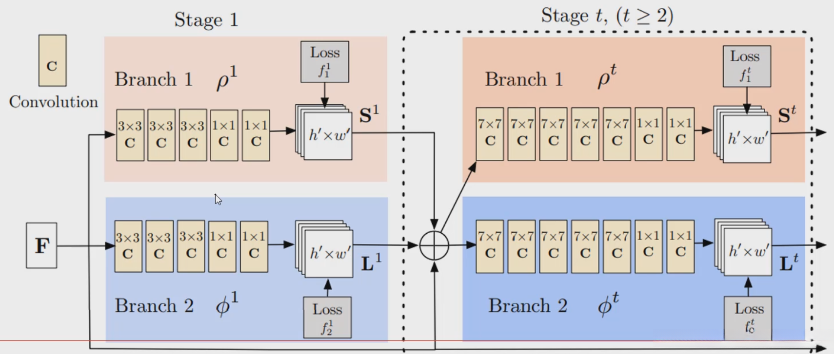以下是整个框架,两个部分分别针对的是1关键点预测、2姿势的PAF向量