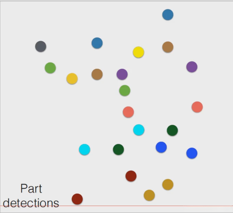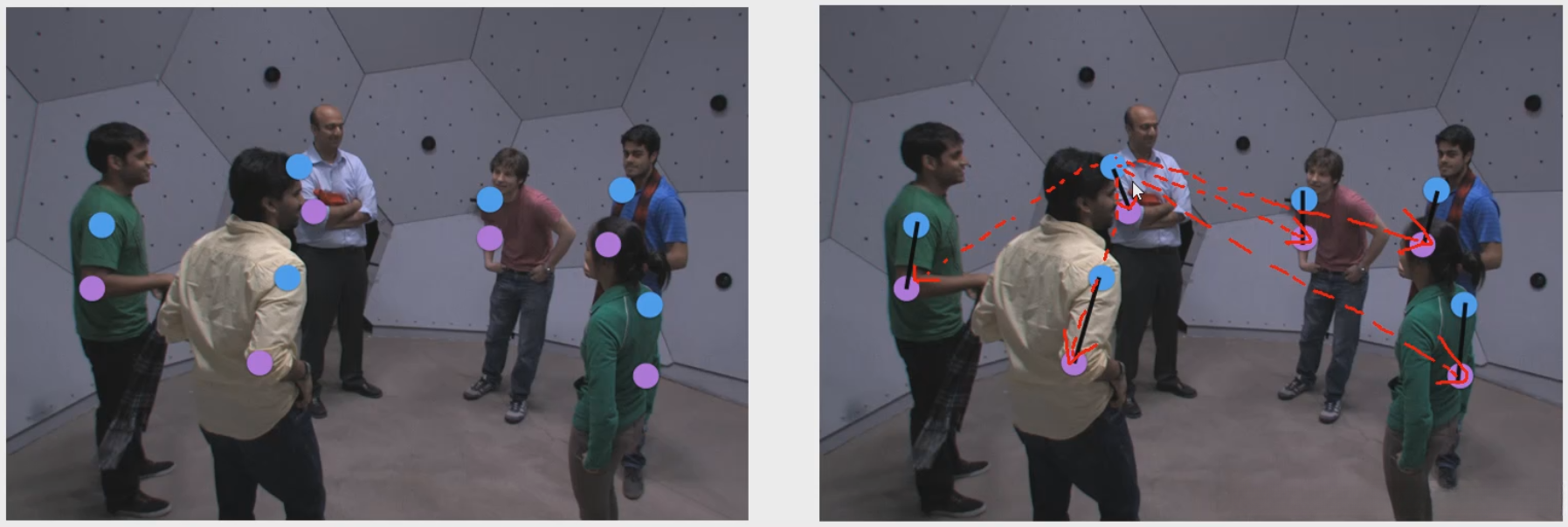PAF(Part Affinity Field)旨在实现这一目标。如图所示(右侧),当通过获取每个人的肩部关键点和肘部关键点后,在图中总共有6个实例中进行分析。针对某一个实例的肩部关键点而言,在与之相连的肘部关键点中存在多种可能的连接组合;其中只有一种组合能够满足特定的要求条件;而其主要任务即在于找到这种精确的配对关系。