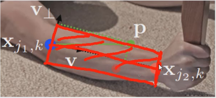 观察第二条处理方式可知,在计算各点处对应的向量时会进行归一化处理即除以模长这一步骤其目的是为了消除长度的影响仅保留方向信息因此生成单位向量能够更好地反映目标方向随后研究者通过分析图像特征确定了一组关键像素位置这些位置处的向量方向与v一致其余位置设值为零最终通过连接两端关键像素并构造一个具有特定宽度(该宽度由图中最后一条公式确定)的区域来识别手臂上的像素点