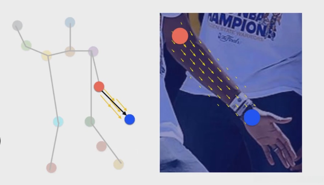即效果如上所示,在右图中我们仅关注向量的方向而不考虑其大小。同样地,在左图中每个关键点之间的连接都呈现相同的方向