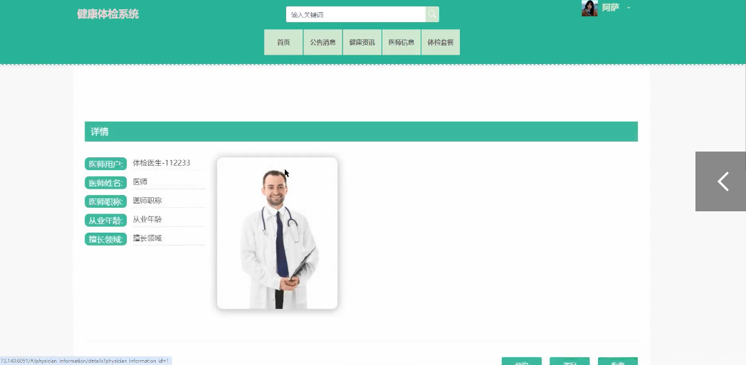 | TC2 | 信息完整性 | 医师信息页面上是否包含所有必要的信息 | 医师信息页面应包含完整的医师相关信息 |