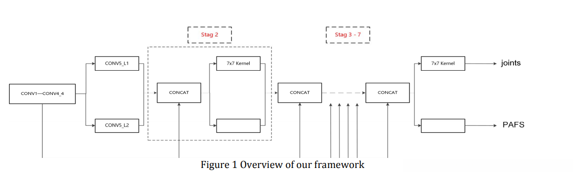 基线框架设计为多任务网络,同时预测关节和PAFs,其关键在于将肢体向量表示为密集的预测任务,类似于关节预测,对数据输入层进行了改进,使其能够生成掩码图作为地面真实图。
