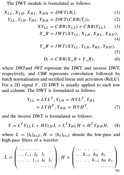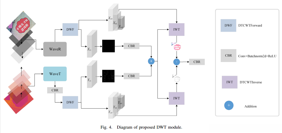 我们通过将RGB与热红外特征的低频分量进行融合处理,并结合逆离散沃尔特变换(Inv-DWT)重构其完整的DWT信息。随后将重构后的完整DWT信息整合到网络架构中以提升其性能。