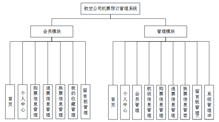 这些功能能够全面覆盖航空公司机票预订管理系统的各项需求。该系统的功能架构非常完善,请参见图3-3的详细说明。
