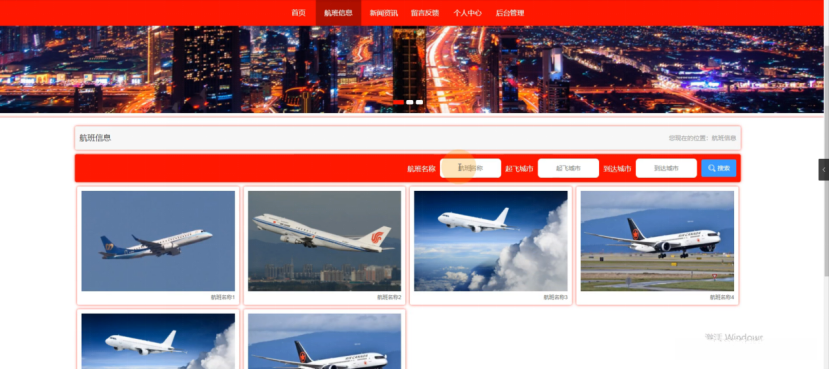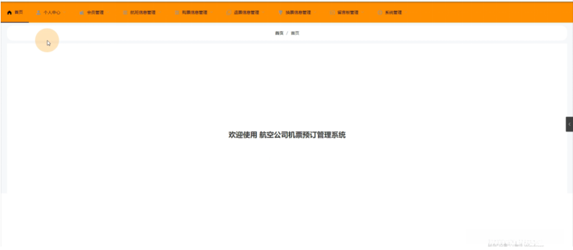 该航空公司机票预订管理系统中,在系统首页可查看首页内容(如主页导航)、航班详情以及时事动态等信息,并在用户空间展示客户反馈等数据管理功能(如图4-1所示)。