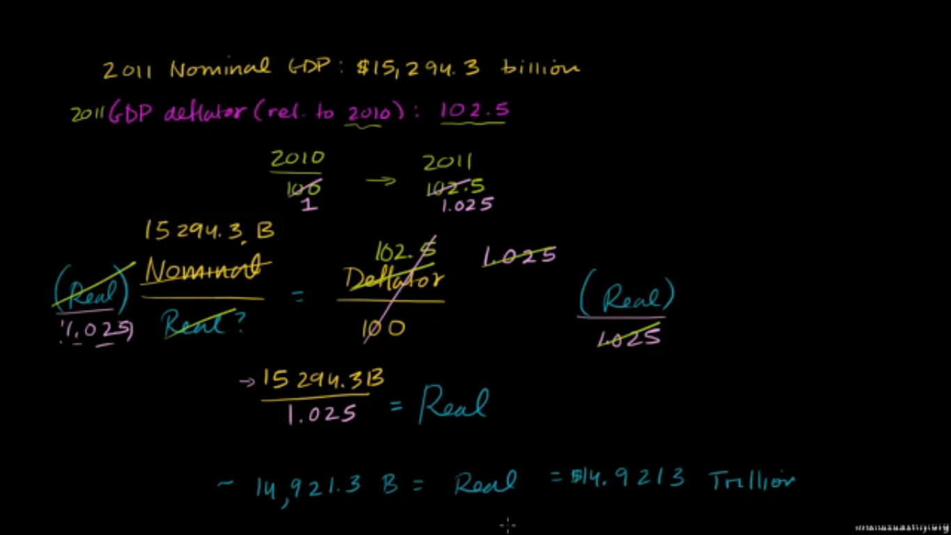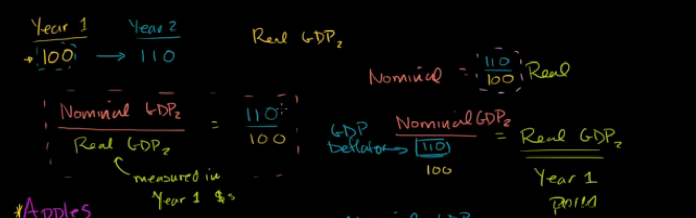 GDP平减指数=名义GDP/实际GDP(存疑:deflator=year2的价格指数)