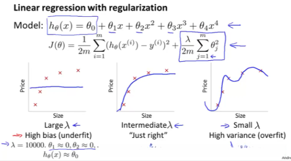 本节重点内容在于辨别过拟合(即模型具有高方差)与欠拟合(即模型存在较高偏差),进而帮助我们优化学习算法的多项式阶数