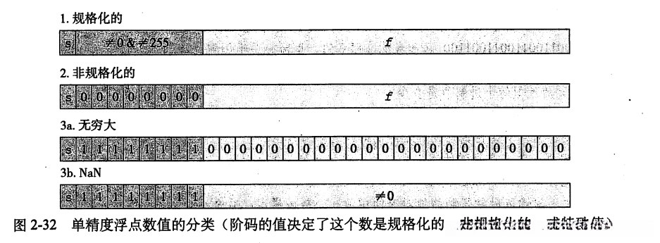 给定了位表示,根据exp的值,被编码的值可以分为三种情况: