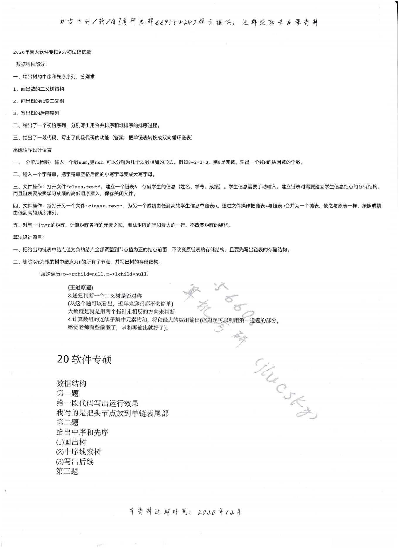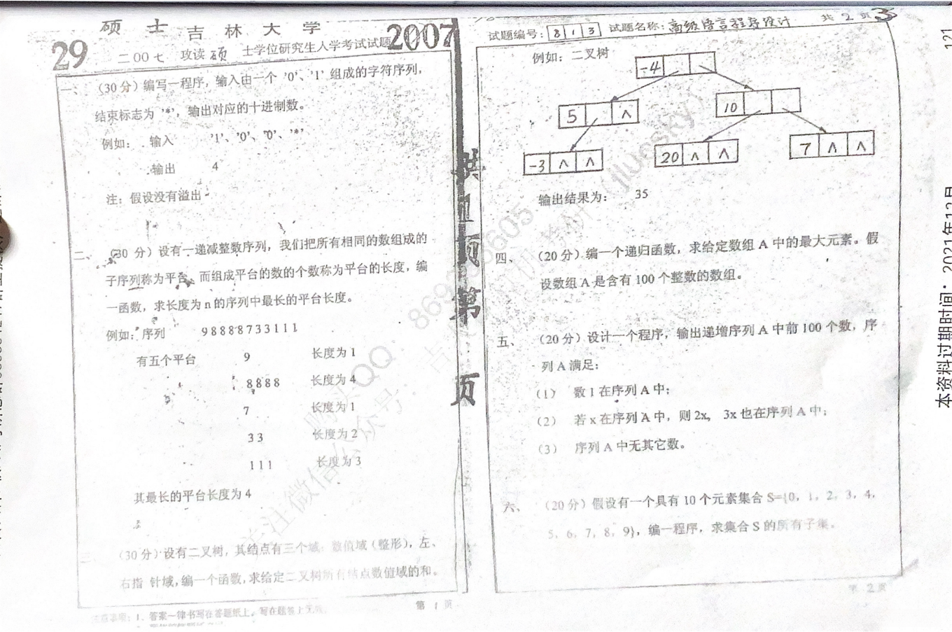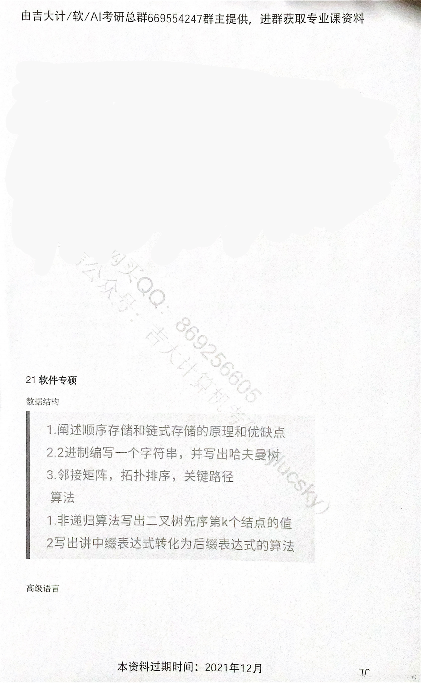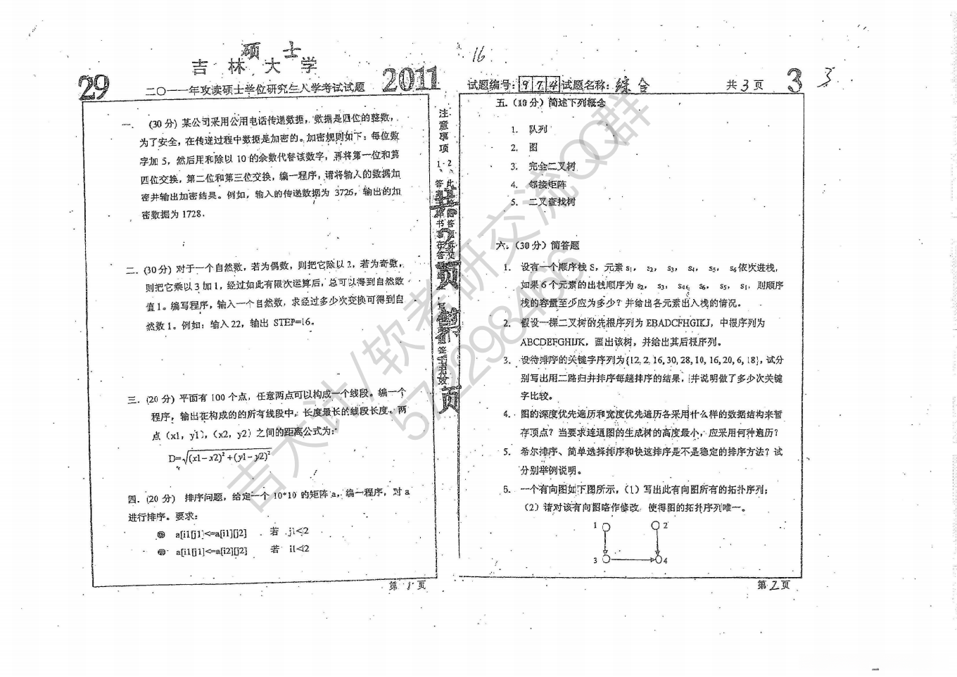 吉林大学软件专硕(吉大软专)10-21考研真题