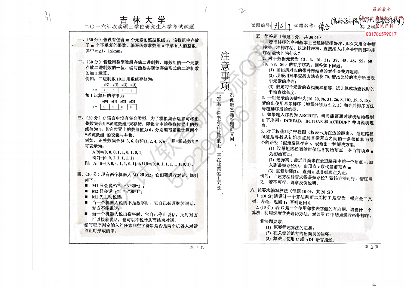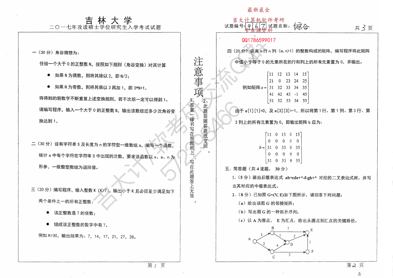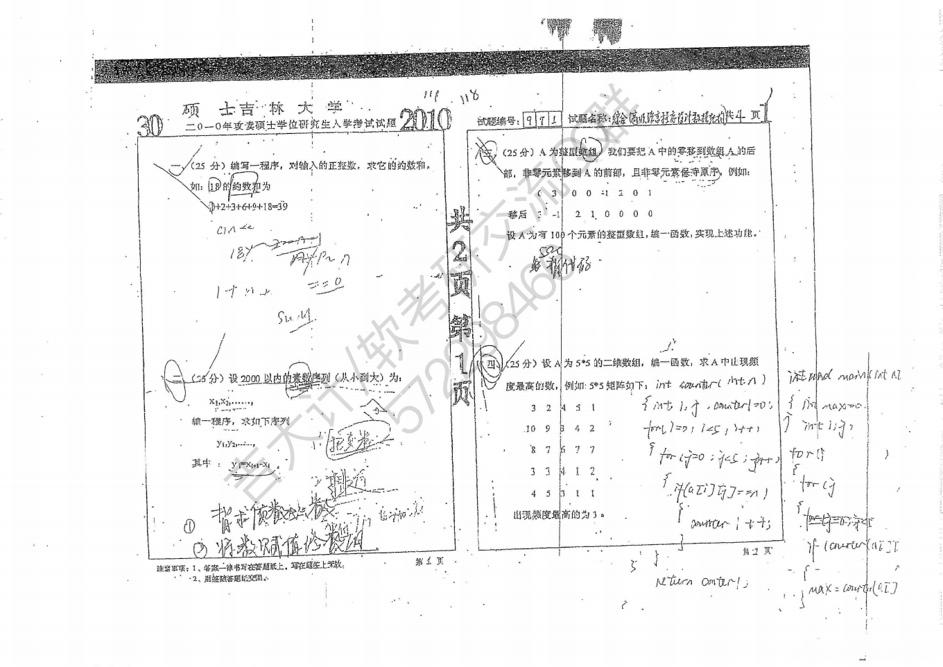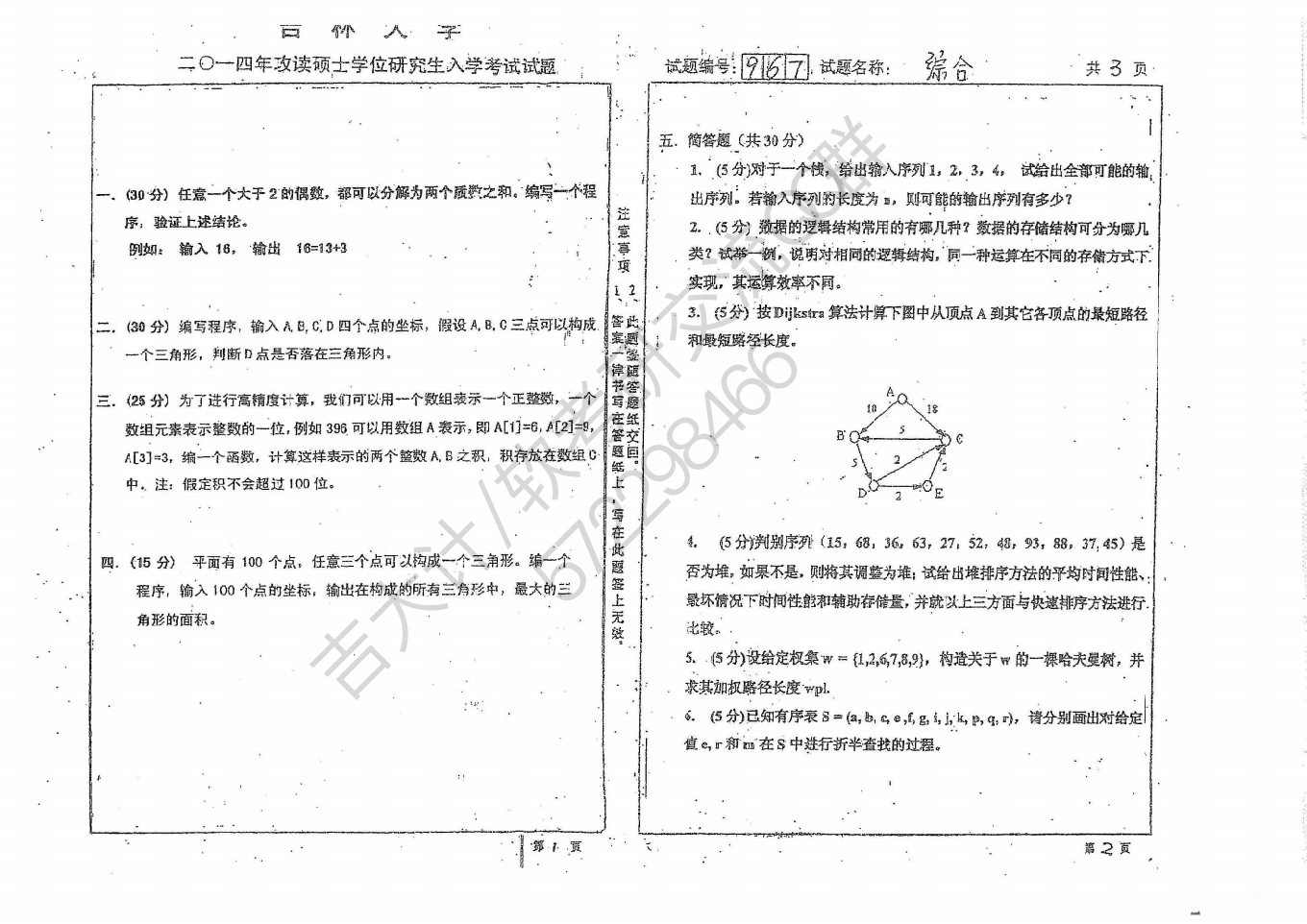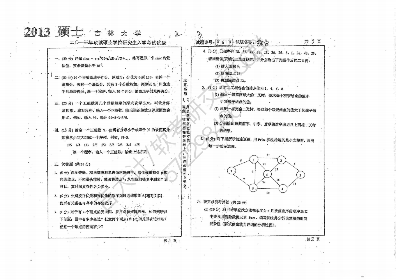 吉林大学软件专硕(吉大软专)10-21考研真题