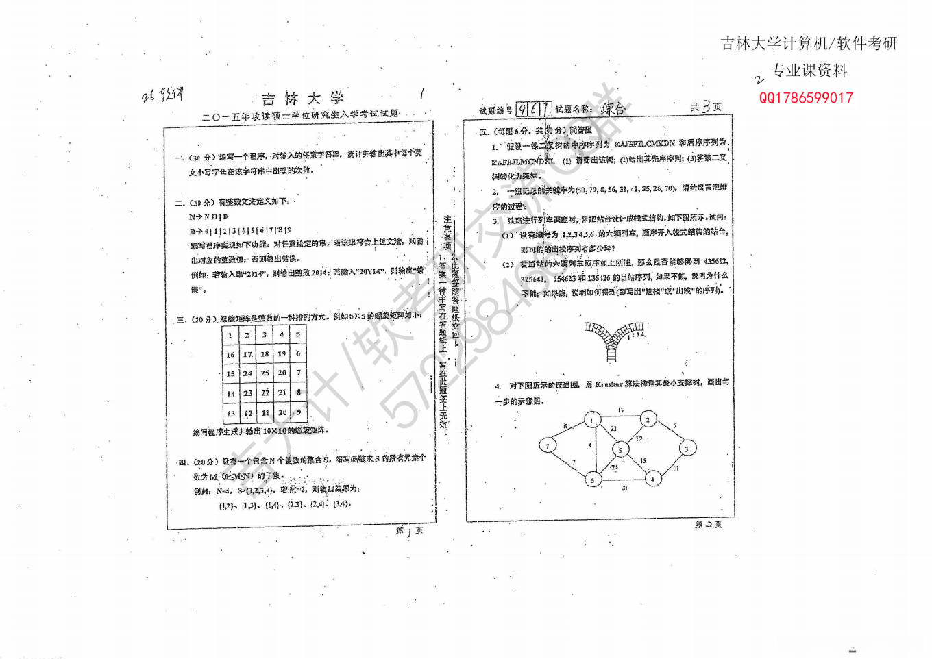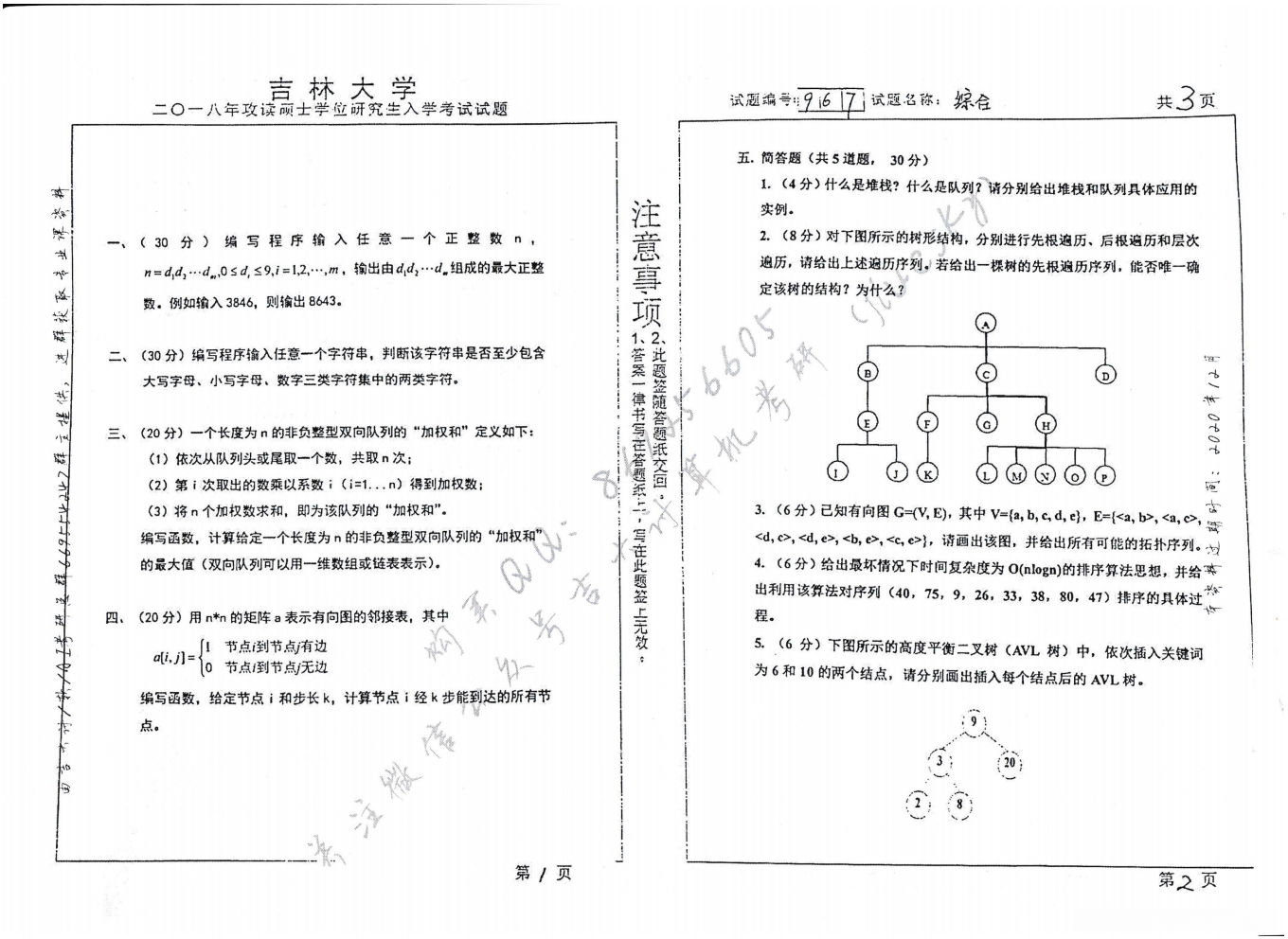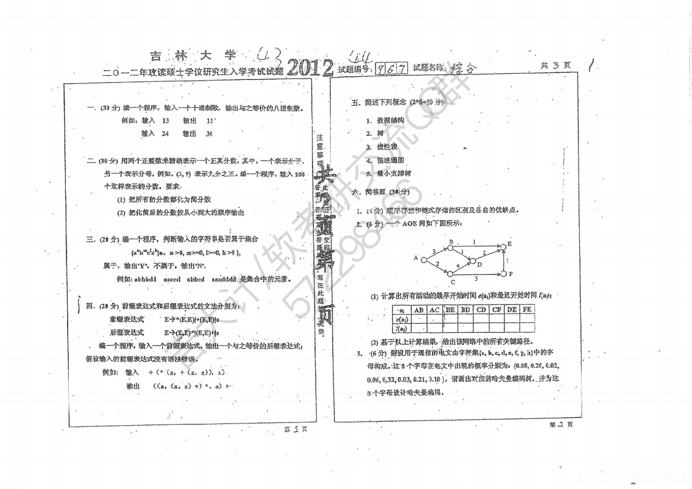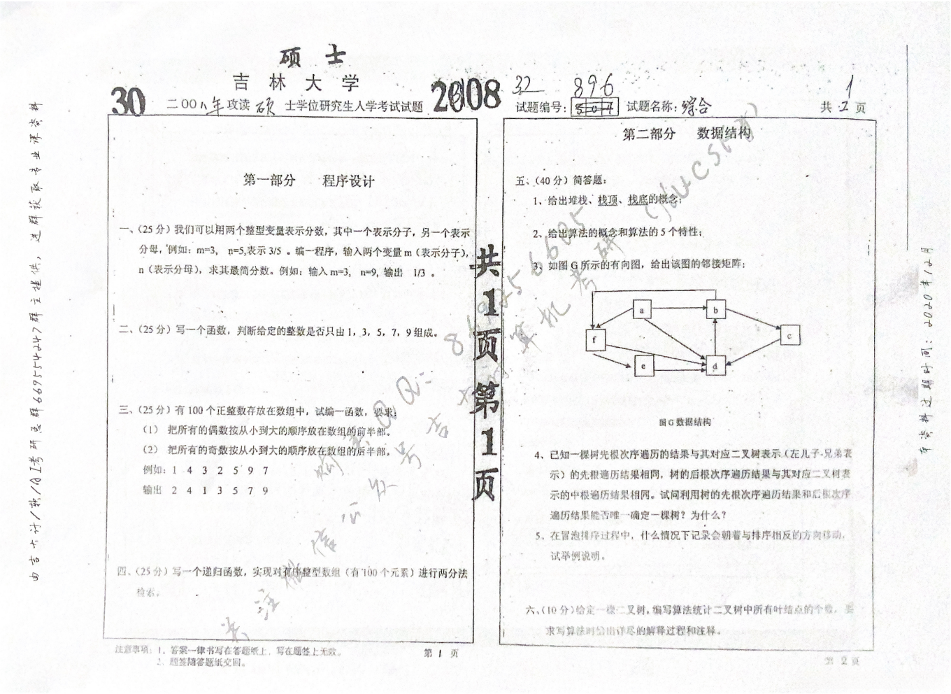 吉林大学软件专硕(吉大软专)10-21考研真题
