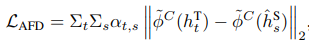 如图所示,在教师模型与学生模型之间分析中间层的特征差异时,默认采用自监督学习方法(AFD)对教师端与学生端之间的相关性注意力进行提取,并以加权后的教师特性和相关性注意力结果作为蒸馏目标的基础进行优化计算。