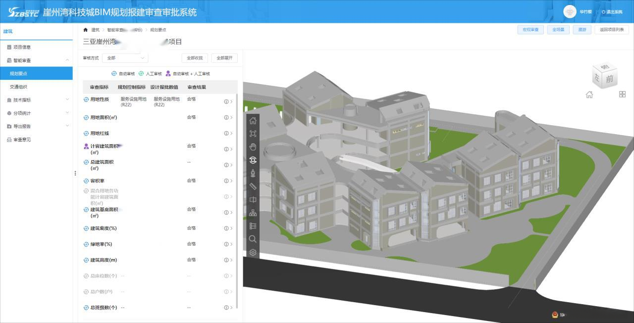 对工程项目BIM模型的报建报批,AI自动对用地红线、容积率、建筑面积等21项指标进行智能审查。相比专家的人工审图过程,不但可以减少审图过程中主观偏差,并且每个项目审图时间从3-5个工作日减少到1-2个工作日,大幅提升了审查的效率和质量。