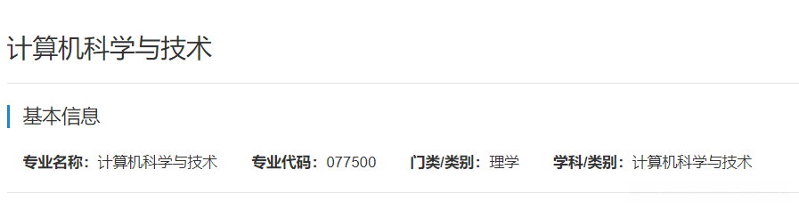 第三步:以计算机科学与技术专业为例,专业代码077500,门类属于理学