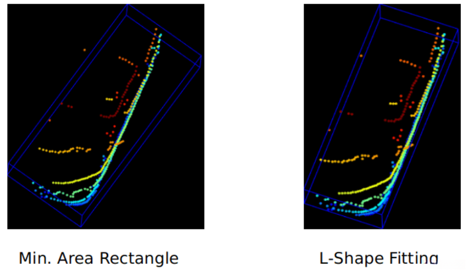 也可以通过确定每个方向上的最小与最大空间范围来用于确定聚类的长方体边界。然而,该方法未能估计被检测车辆的方向。通过对比分析可知,两种方法间的差异主要体现在这一特性上。