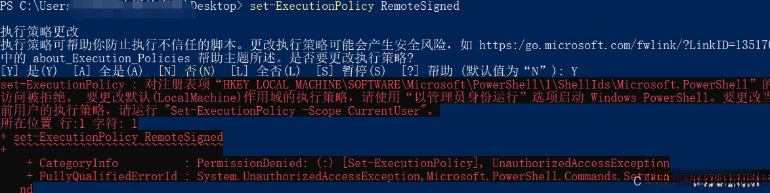 根据上图的错误提示输入:Set-ExecutionPolicy -Scope CurrentUser