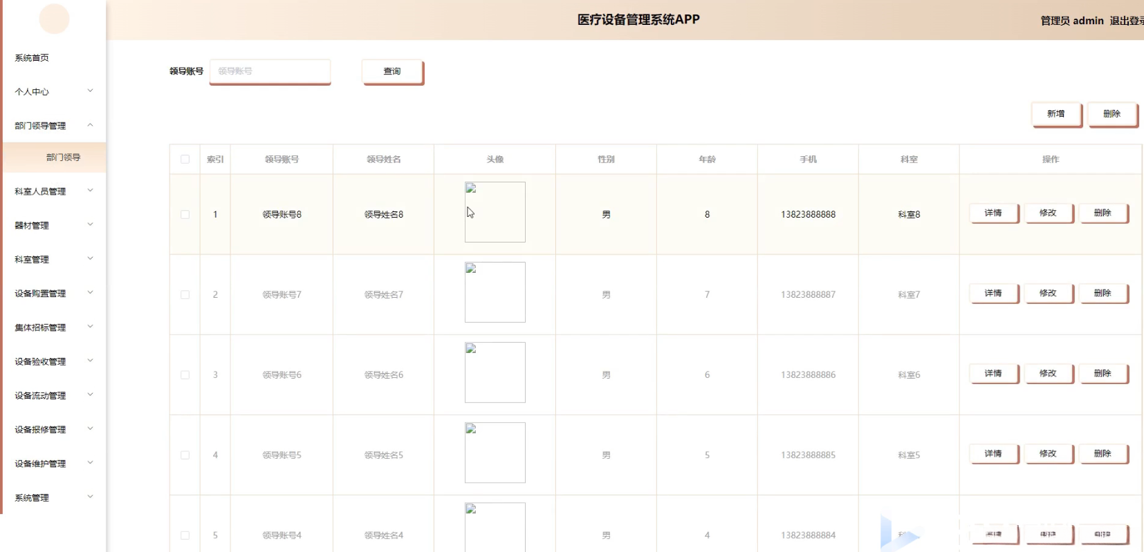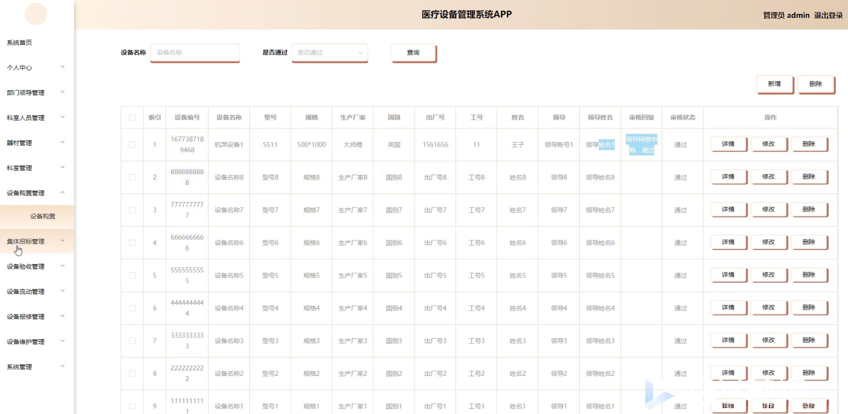 选题背景:医疗设备管理系统APP的研制能够有效应对常见的医疗设备管理问题。首先该系统具备相应的功能模块能够实现设备的信息记录与查询该系统还支持远程监控功能以确保设备状态良好其次通过实时更新机制APP能够及时反馈关键指标数据从而为决策提供可靠依据此外基于云端存储的技术保障APP能够保证数据的安全性避免因物理丢失造成的数据损失