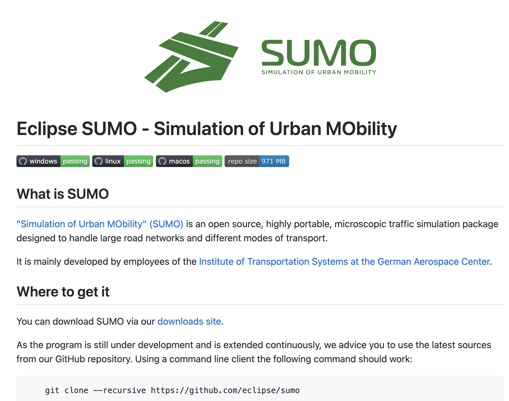 GitHub - eclipse/sumo: Eclipse SUMO 是一个开源、高度可移动、基于微观元胞模型且支持连续交通流的大规模网络仿真软件包。它支持行内交通仿真并集成行人模拟,并提供一套丰富的工具集用于场景创建。