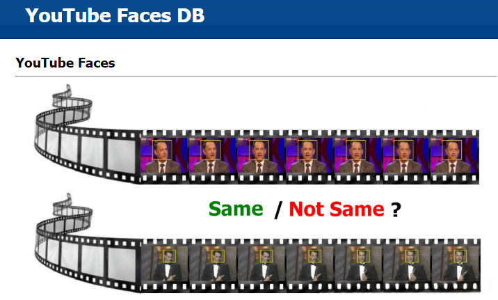 YouTube Video Faces 用于 人脸识别。在该数据集上,该算法需 判断 两个 视频 是否属于同一 人。给定两个 视频 输入 ,其 标记 为 匹配 或 不匹配。