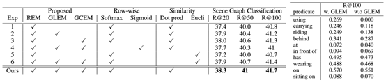 其中REM,GLEM,GCEM分别代表relational embedding module,geometric layout encoding module,global context encoding module。可以看到确实后两个模块都是有作用的,但是看不到第一个REM的作用,要是有个三个模块都没有的实验结果就好了,可是作者不公开,发邮件问了也不给,因为和三星的保密合同吧。。。。嗯。。。就酱紫