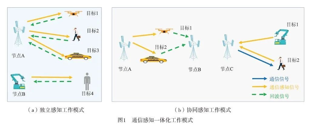 在实际应用环境中, 通信感知一体化技术基于感知主体与被感知目标之间信息交互方式的差异而呈现出两大类的操作模式. 具体而言, 请参见图1.
