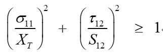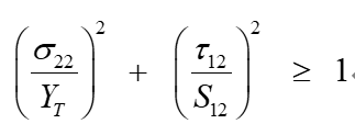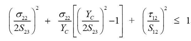 式中XT、XC、YT、YC、S12、S23为复合材料的强度指标,分别为纤维方向抗拉、抗压强度,垂直于纤维方向的抗拉、抗压强度,以及面内的剪切强度和横向的剪切强度,s11、s22分别为平行于纤维方向的应力和垂直于纤维方向的应力,t12为面内剪应力。