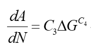 表示裂纹扩展速率,C1、C2、C3、C4为材料疲劳裂纹扩展常数,通常由实验测得,DG=Gmax-Gmin表示在单个载荷周期内,裂纹尖端的最大应变能释放率与最小应变能释放率的差值。