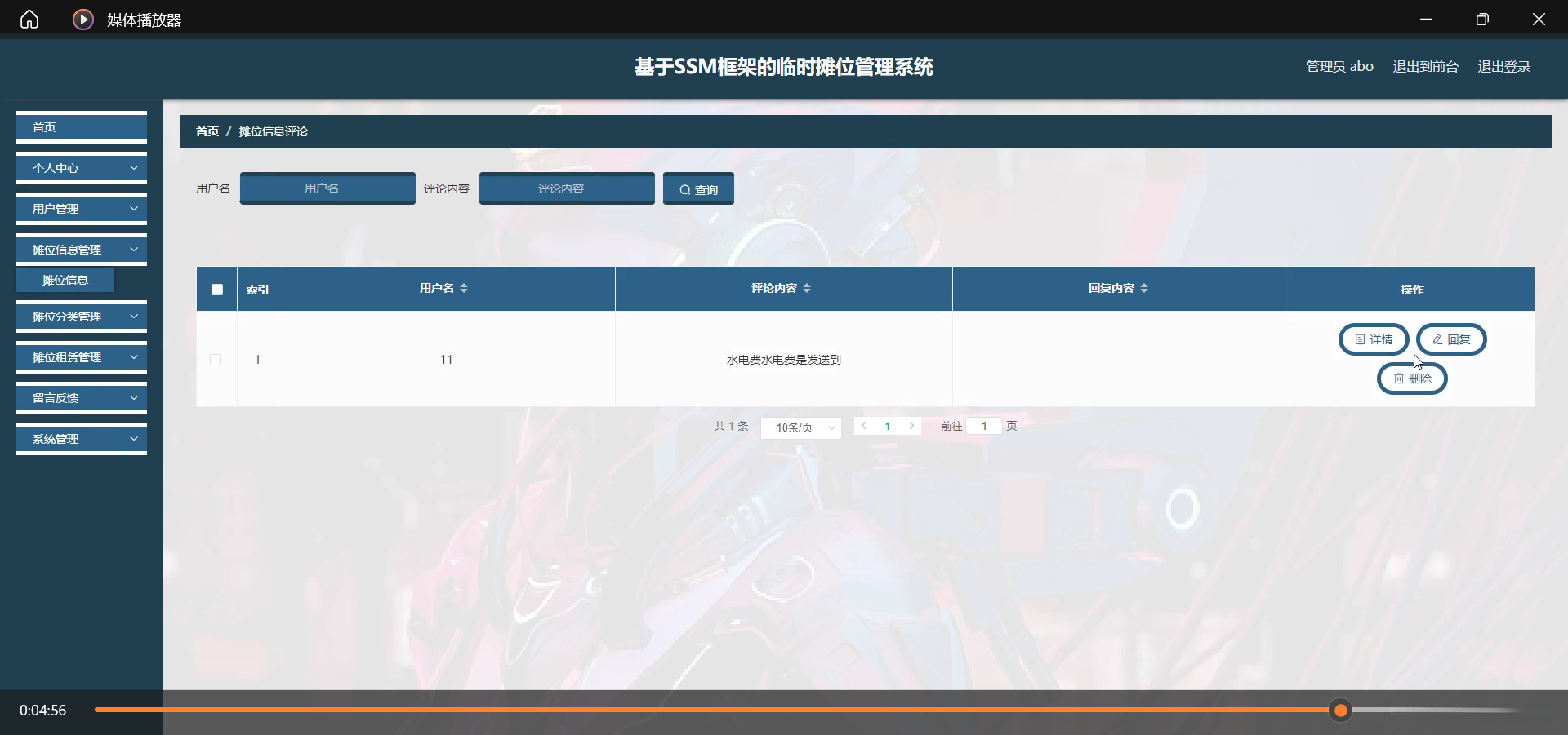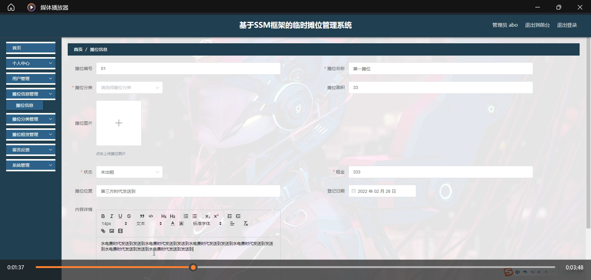 基于特定框架设计并部署的临时摊点管理系统,在优化城市管理科学性和提升其有效性方面发挥重要作用。该系统旨在为摊贩创造公平而合理的经营环境,在规范化地布置位置并合理安排使用的基础上减少不必要的的竞争冲突,并保护其合法权益。在系统化管理下有助于维护市场秩序,在严格控制摆卖区域规模、种类以及营业时间等 Parameters 的基础上可有效避免过度商业化对居民生活造成的影响。与此同时系统的引入不仅能够显著提高城市管理部门的工作效率通过实时监控和数据分析管理者可更精准地把握市场动态从而做出更有针对性地调整管理策略;同时良好的摊位管理还能够在提升城市形象方面发挥积极作用吸引更多的游客与消费者进而带动相关产业的发展;最后一个高效的临时摆卖管理系统不仅能在解决当前面临的一系列问题上发挥作用更能成为推动城市可持续发展的重要支撑力量