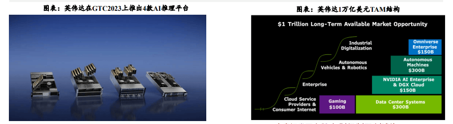 聚焦软件及服务的迭代更新,发布与维护H100 NVLGPU及相关PCIe H100等硬件的迭代更新,同时智能计算服务平台DGXCloud、光刻计算库CuLitho以及量子计算加速系统等智能计算相关产品。