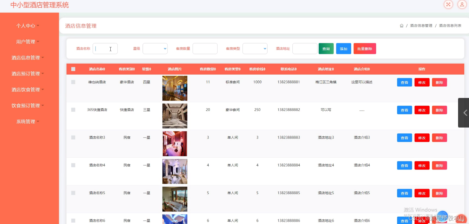 中小型酒店管理系统(JSP+java+springmvc+mysql+MyBatis)
