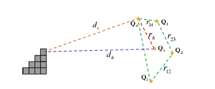 d_h>d_c-r_h,\qquad r_h\le r_{12}+r_{23}+r_{34}
