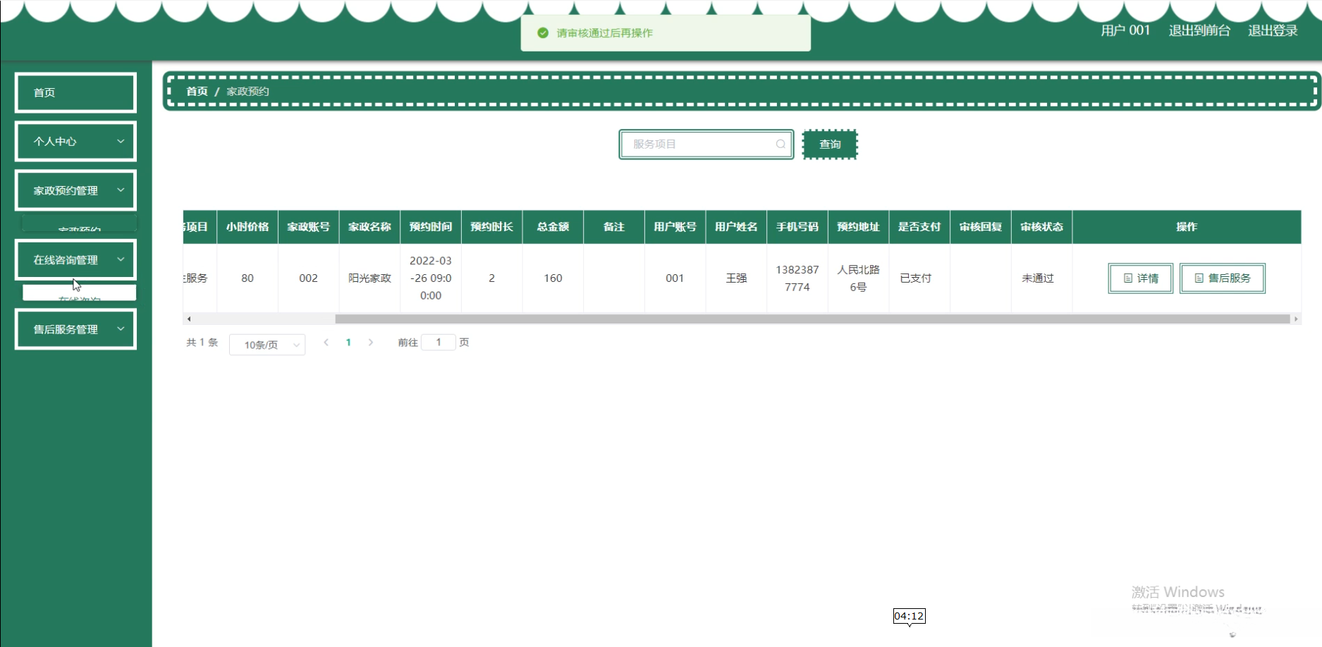 在数据安全方面, 系统将设立健全的数据保护机制, 以保障用户信息和交易数据的安全。此外, 系统还将设立家政公司考评体系, 以规范家政行业市场, 并进一步提升家政企业服务质量。