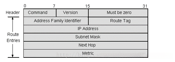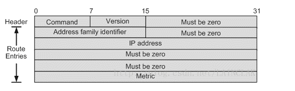 RIP-1报文格式如下:(一个RIP报文最多携带25条路由)