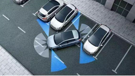 图8展示了超声波技术在倒车场景中的应用示意图。其中蓝色扇形区域对应于APA型超声波雷达的探测范围,在透明扇形区域内则体现了UPA型超声波雷达的有效覆盖面积。