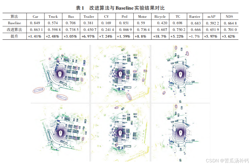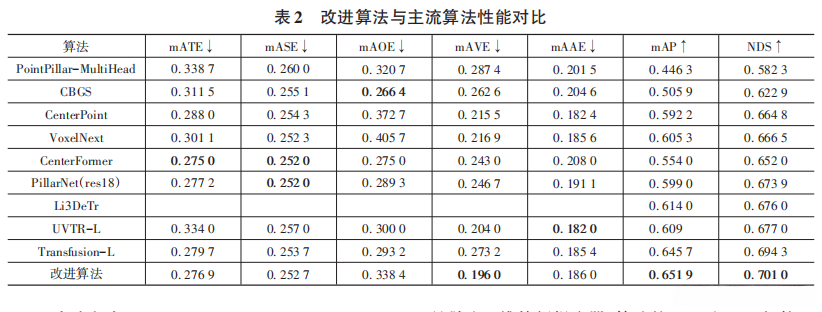 在大规模公开数据集nuScenes上进行了系统性的模型训练与实验验证:相对于基准算法,在mAP(平均精度均值)指标上实现了5.97%的提升,在NDS(标准化检测精度)指标上实现了3.62%的进步。