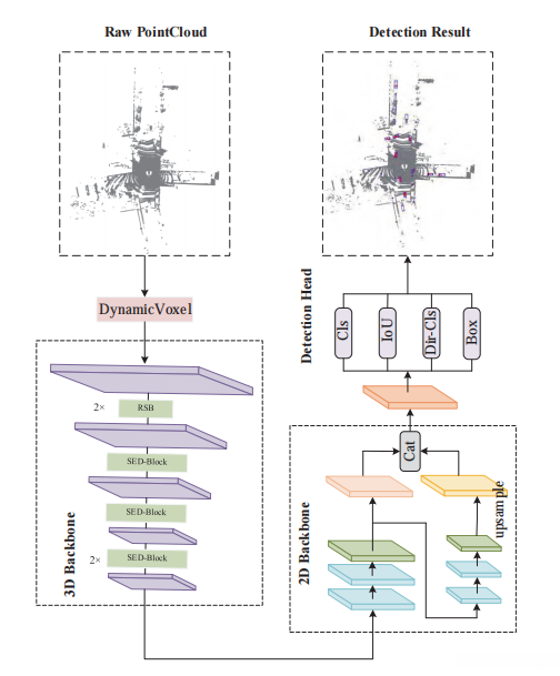 采用动态体素编码及PointNet-mini架构进行特征提取。