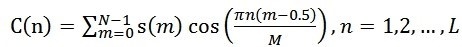 将上述的对数能量带入离散余弦变换,求出L阶的Mel-scaleCepstrum参数。L阶指MFCC系数阶数,通常取12-16。这里M是三角滤波器个数。